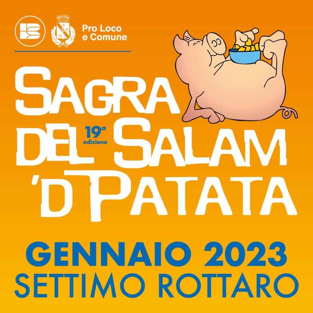 Sabato 28 e domenica 29 gennaio torna a Settimo Rottaro (TO) la Sagra del Salam ‘d Patata, che richiama la memoria di quella “cultura del maiale” che sapeva trasformare in una festa il periodo di tempo che andava dalla macellazione dell’animale alla cena di chiusura: un avvenimento vero e proprio, atteso con trepidazione che sapeva coinvolgere un gran numero di persone.