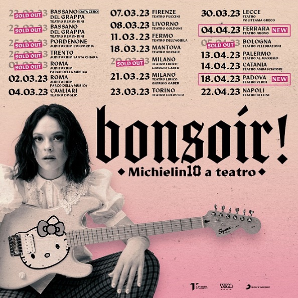 Cresce l’attesa per la release di Cani Sciolti grazie anche alla serie di sold out messi a segno con il bonsoir! – Michielin10 a teatro: il tour, prodotto da Vivo Concerti, ha già registrato numerosi tutto-esaurito, a cui si aggiungono il sold out della data di Bologna del 5 aprile e, a grande richiesta, due nuove date il 4 aprile al Teatro Nuovo di Ferrara e il 18 aprile al Teatro Verdi di Padova.