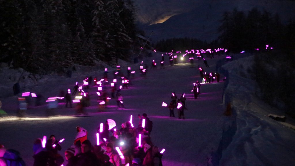 A partire dalle 13.30 di sabato all’interno dello ski village, nell’area Baby Gorraz vengono consegnate a chi è si è già iscritto e a chi lo fa al momento, le torce a luci led rosa da esibire nella discesa. In questa nona edizione oltre ad alcuni gadget, verrà consegnato uno zainetto brandizzato rigorosamente rosa.