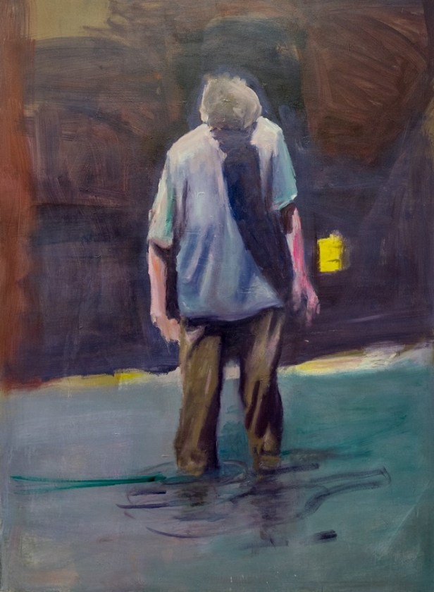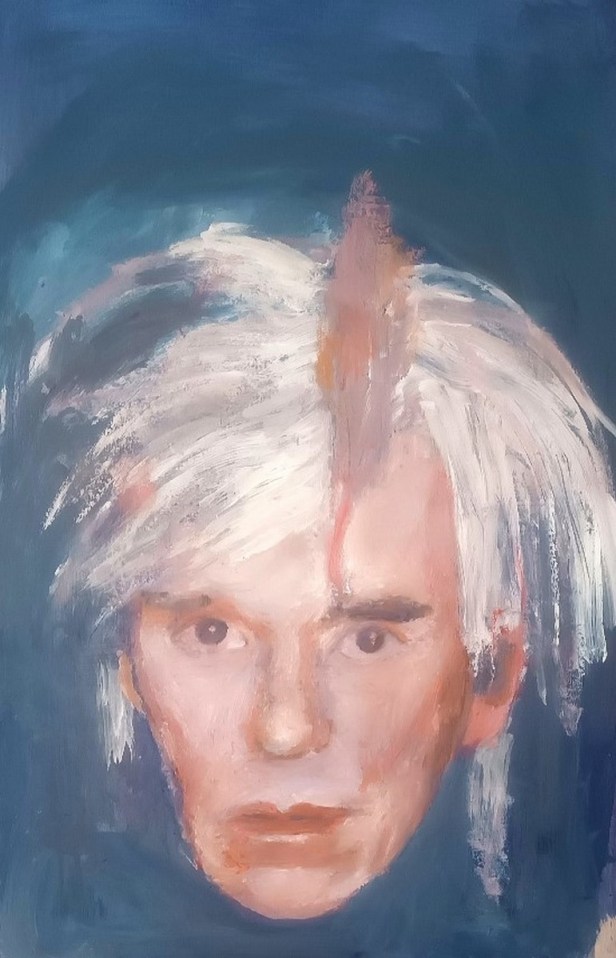 Presente in mostra anche una serie di dipinti caratterizzati da una visione dall’alto, come se i soggetti ritratti fossero spiati da un drone. Chiude il progetto, un omaggio ad Andy Warhol, il più grande voyeur della cultura americana, che osserva e registra la messa in scena della pittura.