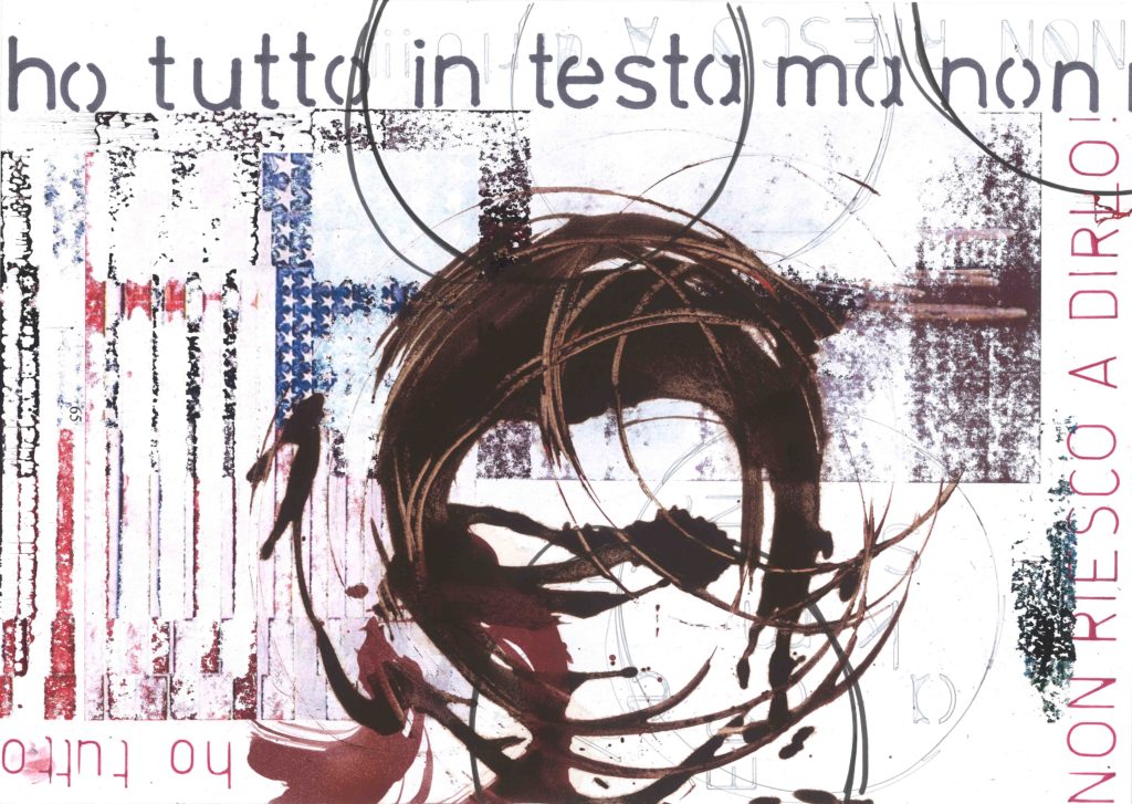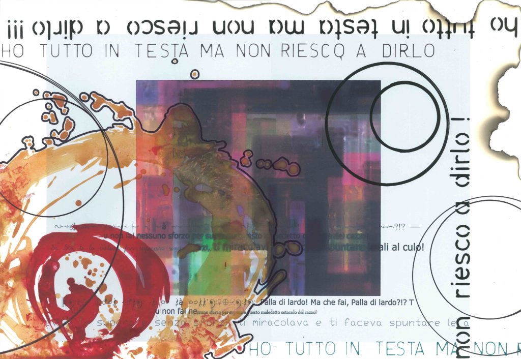 Il colore contribuisce con il segno a creare un equilibrio di esperienze multi-sensoriali che perl’artista concretizzano quello che con le parole “non riesce a dire”. La difficoltà di questa azione è evidente osservando i tagli, le sgocciolature, i fori e gli strappi sulla tela.