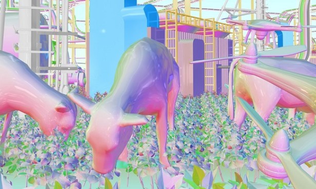 Reasoned Art è inoltre presente in fiera con l’esposizione di alcune opere digitali: l’iper-modernismo di (ab)Normal con le sue mandrie di droni, le wunderkammer di meme di Alvar Aaltissimo e le visioni utopiche/distopiche di City Maybe.