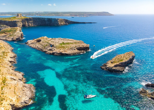 Comino la si raggiunge in barca. Per un’escursione ad alto tasso di romanticismo, suggeriamo di noleggiare uno yacht o una barca a vela privati, per cenare in una delle baie e, se le temperature già lo concedono, un tuffo in quelle acque turchesi immortalate in numerosi film per la loro strepitosa trasparenza.