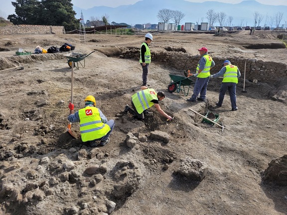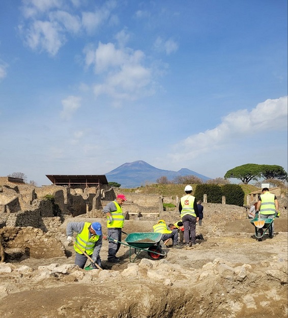 A Pompei, si sta nuovamente scavando in un’area estesa per circa 3.200 mq, quasi un intero isolato della città antica sepolta nel 79 d.C. dal Vesuvio. Il progetto si inserisce in un più ampio approccio che, sviluppato durante gli anni del Grande Progetto Pompei, mira a rettificare e risolvere i problemi idrogeologici e conservativi dei fronti di scavo, ovvero il confine tra la parte scavata e quella inesplorata della città antica. Quest’ultima ammonta a circa 15 ettari di isolati e case ancora sepolti sotto lapilli e cenere, quasi un terzo dell’abitato antico.