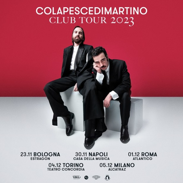 Dopo aver partecipato alla 73esima edizione del Festival di Sanremo con il singolo “Splash” (Numero Uno/Sony Music) – già certificato Disco D’oro – che è valso loro il Premio della Critica Mia Martini e il Premio della sala stampa Lucio Dalla, Colapesce e Dimartino annunciano CLUB TOUR 2023 la tournée prodotta e organizzata da Vivo Concerti, in partenza a novembre 2023.