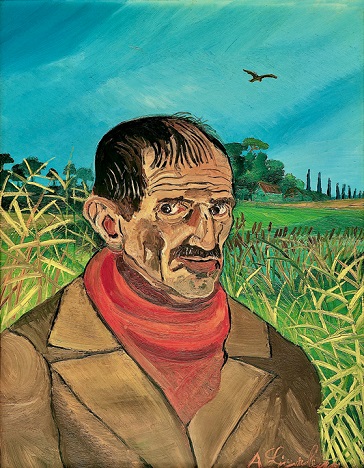 Nato a Zurigo nel 1889 da madre di origine bellunese e da padre ignoto, viene dato subito in adozione ad una famiglia svizzera. Già dall’adolescenza manifesta alcuni problemi psichiatrici che lo portano, nel 1913, a un primo internamento presso un collegio per ragazzi affetti da disabilità. Nel 1917 viene ricoverato in una clinica psichiatrica, dopo un’aggressione nei confronti della madre affidataria Elise Hanselmann che, dopo varie vicissitudini, deciderà di denunciarlo ottenendo l’espulsione di Antonio dalla Svizzera il 15 maggio del 1919 e il suo invio a Gualtieri, il comune d’origine del patrigno (il marito della madre naturale, che odierà sempre). Ligabue non parlava l’italiano, era incline alla collera e incompreso dai suoi contemporanei, veniva soprannominato “el Matt” dagli abitanti di Gualtieri che ne rifiutavano i dipinti e il valore artistico, costringendolo a prediligere la via dell’alienazione e della solitudine. Dopo tormentati e inquieti anni di vagabondaggio in cui vive solamente dei pochi sussidi pubblici e si rifugia nell’arte per esprimere il suo disagio esistenziale, a cavallo tra il 1928 e il 1929 incontra Renato Marino Mazzacurati (importante artista della Scuola Romana) che ne comprende il talento artistico e gli insegna ad utilizzare i colori. Con singolare slancio espressionista e con una purezza di visione tipica dello stupore di chi va scoprendo - come nell’infanzia - i segreti del mondo, Ligabue si dedica alla rappresentazione della lotta per la sopravvivenza degli animali della foresta; si autoritrae in centinaia di opere cogliendo il tormento e l’amarezza che lo hanno segnato, anche per l’ostilità e l’incomprensione che lo circondavano; solo talvolta pare trovare un po’ di serenità nella rappresentazione del lavoro nei campi e degli animali che tanto amava e sentiva fratelli. Nel 1937 viene nuovamente ricoverato presso l’ospedale psichiatrico di San Lazzaro a Reggio Emilia per autolesionismo e per “psicosi maniaco-depressiva” nel marzo del 1940. È il 1948 quando comincia a esporre le sue opere in piccole mostre e ottenendo, sotto la guida di Mazzacurati, qualche riconoscimento e a guadagnare i primi soldi. Ma il successo è breve: dopo essersi permesso solo qualche lusso, nel 1962 viene sopraggiunto da una paresi e ricoverato all’ospedale di Guastalla dove continua a dipingere e dove termina la sua vita il 27 maggio del 1965.