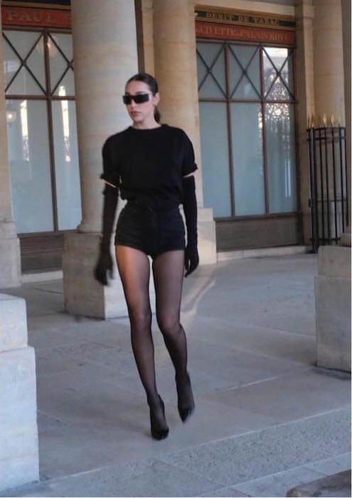 L’imprenditrice Chiara Ferragni ha seguito la moda degli hot pants abbinando ai collant Calzedonia dei pantaloncini-culotte neri, creando un look formale e raffinato che ha valorizzato al meglio la silhouette.
