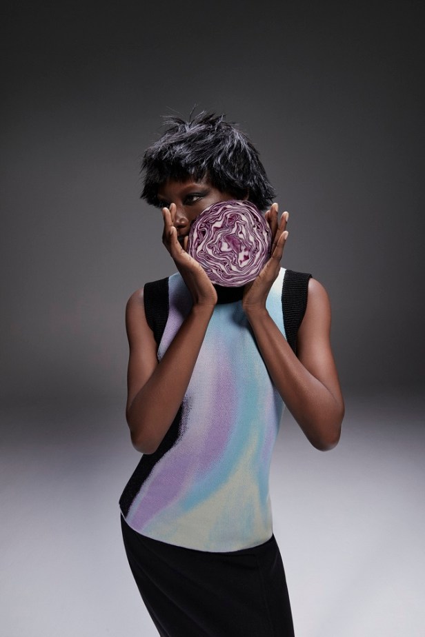 I grandi carré – anche loro double – si drappeggiano intorno al corpo secondo la millenaria scienza del drappeggio statuario, le giacche cardigan di varie lunghezze non hanno bottoni, e i capi dall’allure sportiva possono essere accostati in autonomia combinatoria con tutti gli altri.