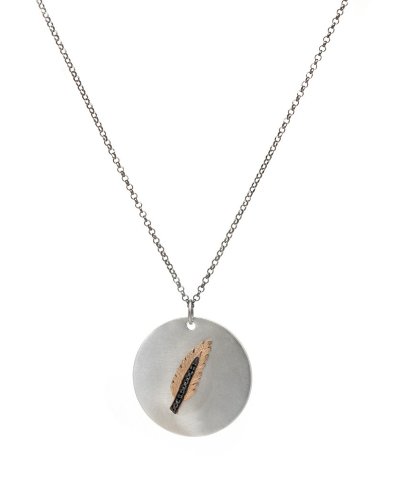 Gli orecchini Piume della collezione Amazzonica sono sorretti da un cerchio in argento 925 e possono essere interpretati in mille modi diversi. Si possono portare in coppia o come monorecchino o, meglio ancora, abbinare alla collana della stessa linea in un rimando continuo di luce ed energia. Dalla catena sottile pende un ciondolo circolare in argento satinato, decorato con la piuma centrale in oro rosa e diamanti neri.