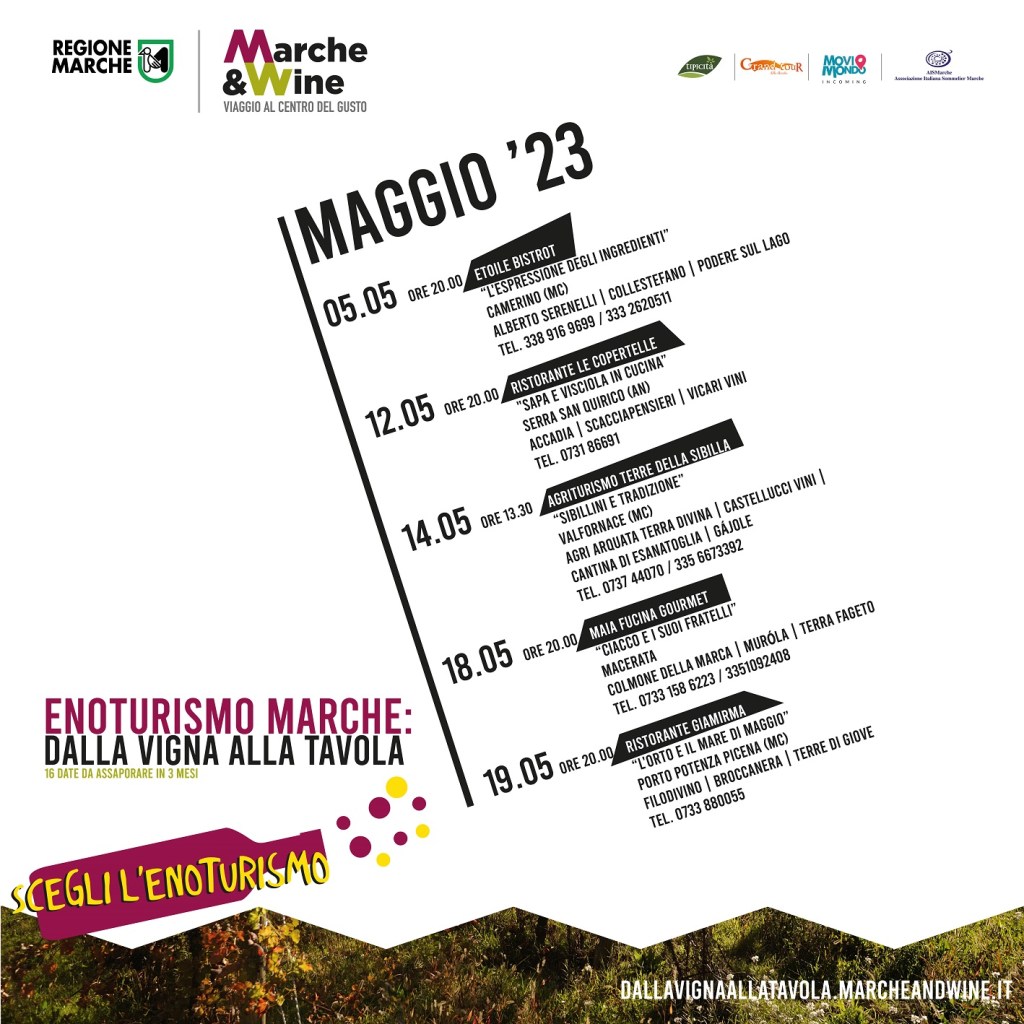Tre mesi, sedici tappe e ben quarantacinque realtà, tra cantine e birrifici. L’iniziativa è cofinanziata dalla Regione Marche nell’ambito dell’iniziativa “ENOTURISMO MARCHE: dalla vigna alla tavola”.