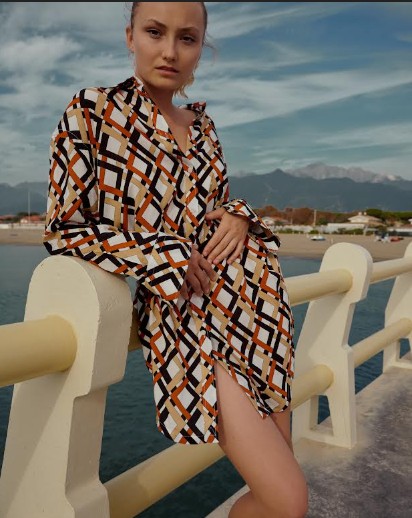 A questi, per la stagione calda, si aggiungono cenni di azzurro e arancio, per quella energia che il tempore del sole porta nelle nostre giornate; un guardaroba “capsule” che accompagna la donna in ogni occasione e con il minimo sforzo.
