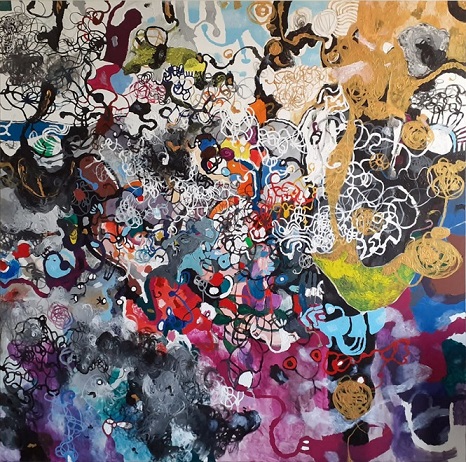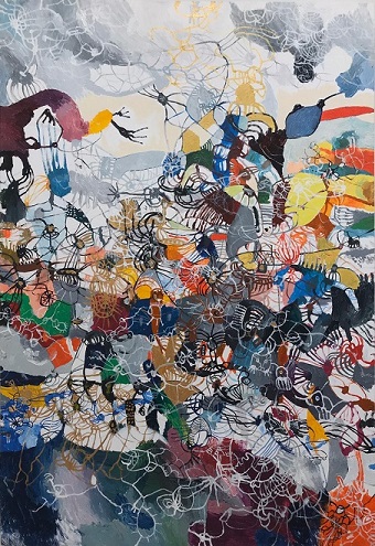 Un’urgenza di pittura che si manifesta anche nel suo linguaggio e nel suo approccio, caratterizzato da continue sovrapposizioni di strati di segni e colore.