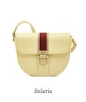 E infine Solaria, borsa a tracolla in pelle volonata conciata al vegetale, anch’essa modellata su forme di legno di faggio e resa ancor più preziosa da una chiusura importante e da un’applicazione in nastro bicolore.