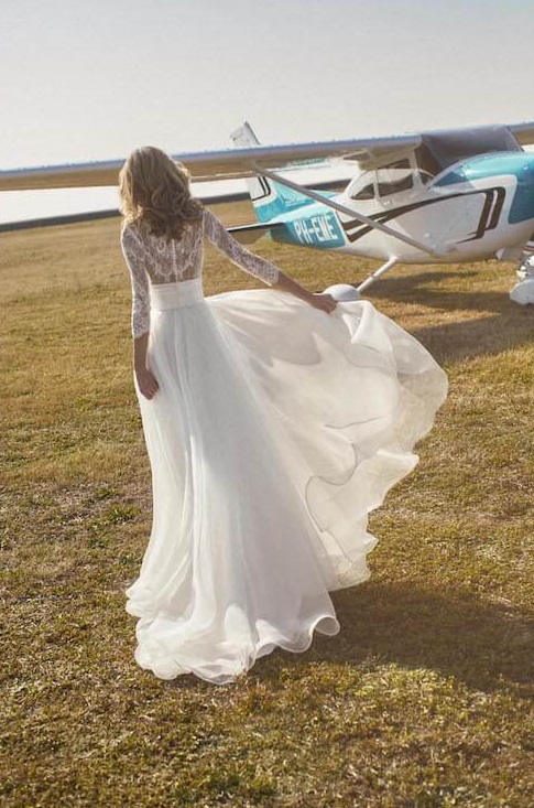Un piccolo aeroporto cittadino fa da sfondo a questo momento magico e pieno di gioia, in cui i meravigliosi abiti della Collezione Sposa del brand, illuminati dalla calda luce del tramonto, sono i protagonisti del racconto: un’avventura poetica attende i due novelli sposi, che si preparano per il primo di una lunga serie di viaggi insieme, a bordo di un aereo da turismo, che attraverso gli scatti diventa il punto di partenza di un nuovo romantico capitolo nelle loro vite.