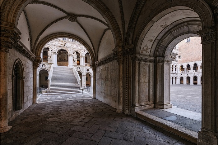 Questo affascinante percorso guidato alla scoperta di luoghi in origine inaccessibili al pubblico inizia presso la monumentale Porta della Carta e prosegue nella Terrazza Foscara accolti da nostalgiche sculture Ottocentesche, effigi delle antiche e mitiche glorie di Venezia.