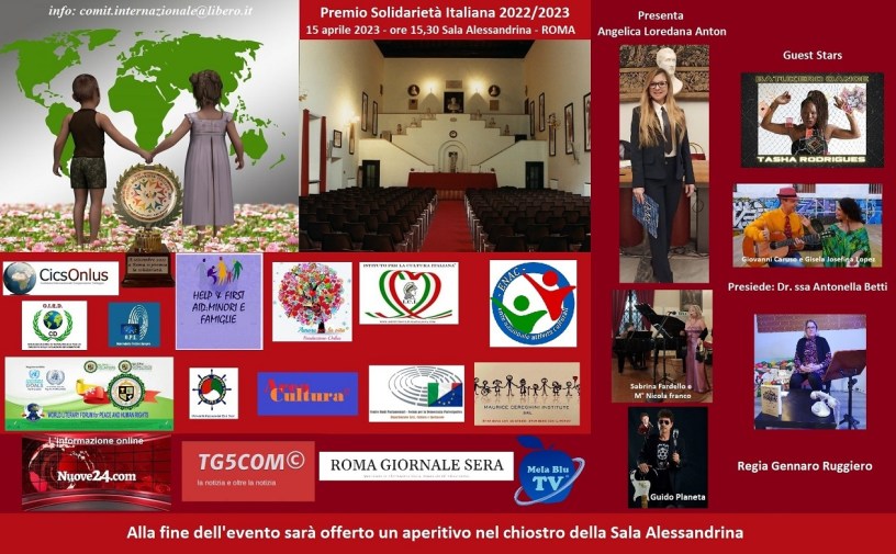 Il prossimo 15 aprile 2023, a partire dalle ore 15,30, nella Sala Alessandrina del Museo Monumentale della Storia dell’Arte sanitaria a Roma (Lungotevere in Sassia – adiacente Ospedale Santo Spirito) avrà luogo la Cerimonia di Premiazione del “Premio Solidarietà Italiana 2023″, organizzato da C.I.C.S. – Comitato Internazionale Cooperazione Sviluppo, presieduto dal dottor Gennaro Ruggiero, con patrocinio e collaborazione di enti prestigiosi.