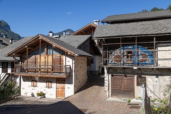 Entrato a gran merito nella schiera dei Borghi più Belli d’Italia, Mezzano manda in scena uno spettacolo tutto suo, di quelli che incanto nella loro disarmante semplicità. Il passato altrove dimenticato, legato a doppio nodo alla ruralità montana, qui non si limita a sopravvivere, ma è vivo, si fa presente. Rinasce non solo nelle cataste di legna che qui si fanno arte, ma anche nelle antiche case contadine in pietra e legno sapientemente ristrutturate; nel campanile a cipolla della chiesa di San Giorgio, dai chiari richiami tirolesi, che nell’800 fu dipinto a due colori; nelle piazze abbracciate alle fontane; nelle facciate impreziosite di iscrizioni e affreschi; nella storica lisièra (il locale dove si produceva il sapone e si faceva il bucato secondo rigidi rituali e precise gerarchie) restituita al paese da un attento restauro; negli orti – che sono circa 250 fra Mezzano e frazioni, su circa 1.600 abitanti – che secondo la tradizione trentina uniscono l’utile al dilettevole spartendo la terra tra ortaggi, fiori, odori e piante da frutto; nei tabià (le vecchie stalle in disuso) che narrano ancora il rito del filò (le storie narrate dagli anziani del paese nelle lunghe serata d’inverno), recuperati a nuova vita per ospitare un commuovente museo etnografico fatto di reperti e amore, l’esposizione di prodotti di artigiani e produttori agroalimentari locali, oppure per diventare una sorta di piccolo teatro e altro ancora; nei vicoli a salesà, ovvero minuziosamente acciottolati; negli stoli, piccoli acquedotti in cunicoli pensati per captare l’acqua dalla sorgente e condurla in paese al coperto, al riparo da contaminazioni: Mezzano ne conserva tre, restaurati e visitabili.
