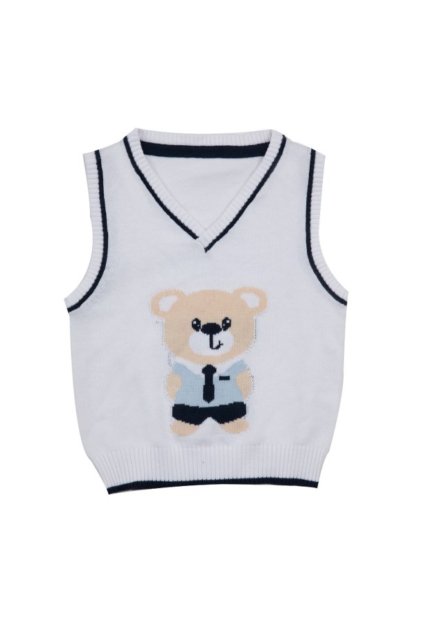 La collezione dedica ai maschietti il cardigan con maxi righe (tutto baby e kid), e per i più piccoli c’è anche lo smanicato in cotone e la stampa di un tenero orsetto.
