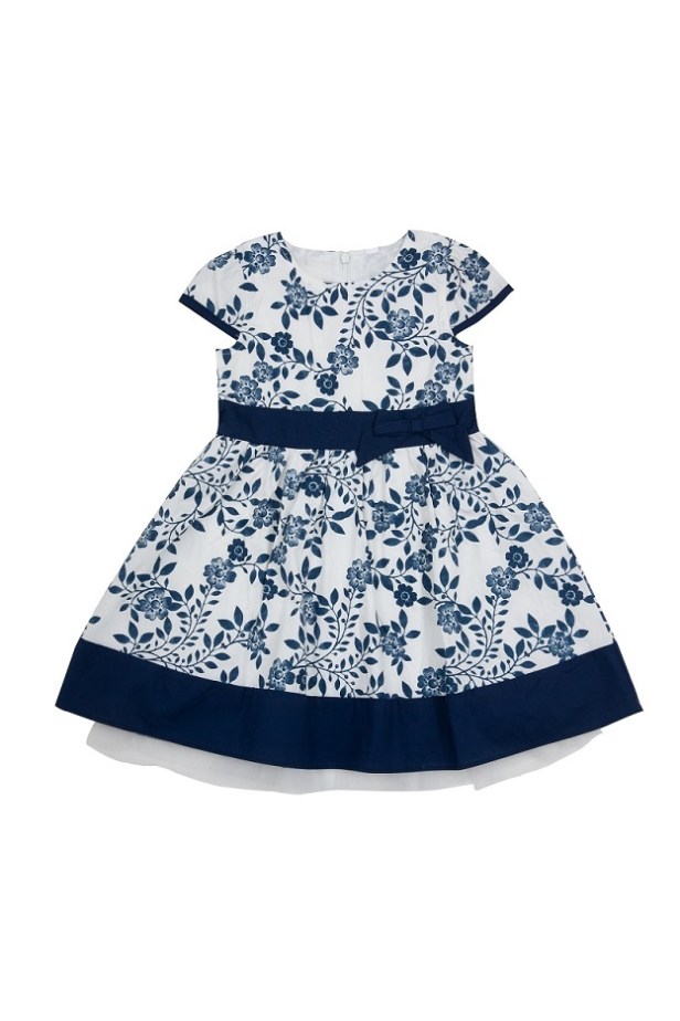 La collezione include abiti dal sapore romantico, come quelli con sottogonna in organza (baby e kid) e diverse fantasie, dalla stampa floreale allover in blu su fondo bianco, a quella che in cui spicca il leggero volo delle farfalle sui fiori.