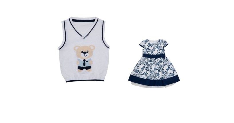 La collezione include abiti dal sapore romantico, come quelli con sottogonna in organza (baby e kid) e diverse fantasie, dalla stampa floreale allover in blu su fondo bianco, a quella che in cui spicca il leggero volo delle farfalle sui fiori.