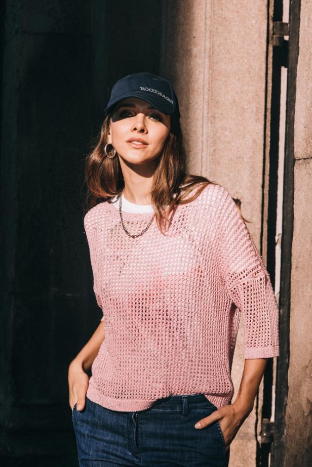 Da questa sinergia nasce la maglia a girocollo con rete a crochet, 100% handmade in Italy.