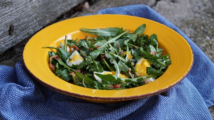 Raccogliete il tarassaco lontano dalle strade e dalle fonti di inquinamento. Il periodo perfetto per fare questa insalata è la prima parte della primavera, ma se lo raccogliete all’ombra e in mesi non aridi sarà comunque morbido e molto buono. Il momento della giornata migliore per la raccolta è in assoluto la mattina presto. Vi do però come opzione anche l’ora del crepuscolo. Se volete potreste aggiungere all’insalata pure delle patate lesse a cubetti.