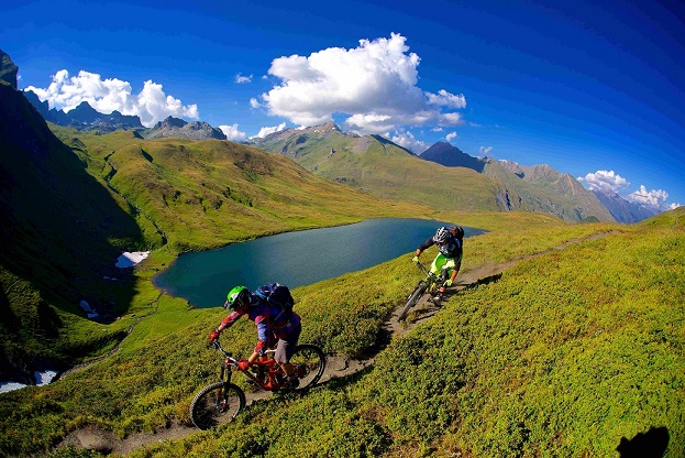 Preferite la MTB? Qui avete di che sbizzarrirti. Grandi dislivelli e scenari maestosi, dai quali spiccano il Monte Bianco, il ghiacciaio del Rutor e, in lontananza, il Gruppo del Rosa e il Cervino, vi faranno amare la MTB Natural Trail Area di La Thuile che, a partire dal punto più alto raggiungibile nella zona del Belvedere a 2.600 m di quota, scende per oltre 1.200 m fino al paese. 220 km di itinerari in questo grande bike park naturale raggiungibile, bici al seguito, con gli impianti di risalita.
