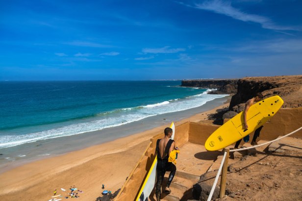 La Playa de la Escalera a Fuerteventuraè per chi invece è disposto a compiere qualsiasi fatica fisica pur di raggiungere il mare. Si trova nei dintorni di El Cotillo nel nord ovest dell’isola e per raggiungerla è necessario percorrere circa 4 km di strada sterrata e scendere al mare dopo una scala con 130 gradini.Non offre i classici servizi turistici, ma è amatissima dai surfisti. E per chi desisterà basterà tornare poco più a nord dove ci sono spiagge più facili da “conquistare”.