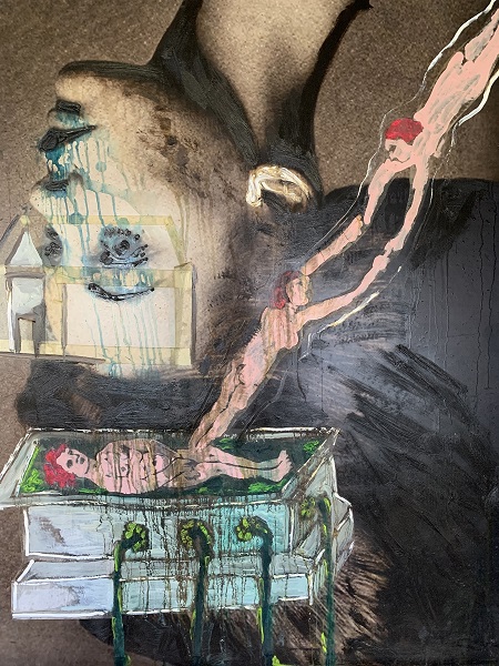 «Walter Davanzo – scrive Eugenio Manzato, già Direttore dei Musei Civici di Treviso – dà testimonianza del terribile primo anno di Covid 19 attraverso un intenso ciclo pittorico scandito per immagini, quasi capitoli di un visionario romanzo: prigioniero nella sua prodigiosa casa-studio, articolata come un sorprendente labirinto, ha dipinto forsennatamente per i lunghi mesi della pandemia dando forma a paure ed angosce, ma anche a riflessioni e fantasie, laddove drammaticamente efficace si è rivelato il suo personale e inconfondibile stile pittorico primitivo ed espressionista».