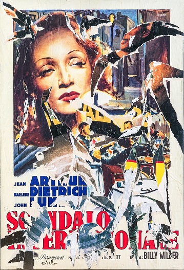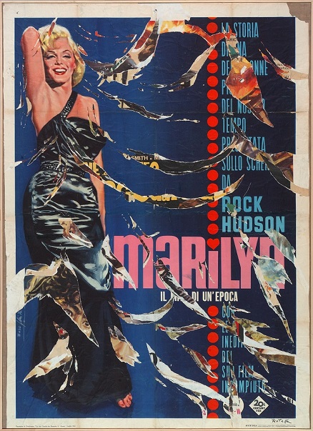 Ulteriore sezione riguarda le nuove icone: si tratta di opere che prendono forma attraverso la sovrapposizione di ritagli monocromi su immagini pubblicitarie rappresentanti icone del cinema o della cultura popolare, utilizzati qui come veri e propri frammenti da ricomporre in un nuovo contesto. In questo modo, Rotella trasforma gli oggetti di consumo e le icone del suo tempo in veri e propri simboli dell’immaginario collettivo. Con le sovrapitture Rotella ha integrato la sua tecnica originaria iniziando ad eseguire delle sovrapitture su décollage: partendo dagli strappi effettuati sui manifesti, ha implementato nel suo modus operandi la presenza del gesto pittorico puro, andando così a rappresentare figure che richiamano le “tracce della tradizione”, per citare Achille Bonito Oliva, ed instaurare di conseguenza un procedimento dialettico tra décollage e pittura. Per riprendere sempre l’opinione del critico padre della Transavanguardia, è emblematico il paragone tra il graffito e la sovrapittura: se il primo è un gesto forte che parte dall’istintività̀, nel secondo caso possiamo invece riscontrare una “prevalenza della pittura e di un linguaggio espressivo”. L’ultima parte della mostra tratta dei Décollages recenti: le muse ispiratrici di Rotella. L’artista, attento osservatore della società̀ dello spettacolo e del glamour, fino agli ultimi lavori eseguiti poco prima della sua morte, avvenuta nel 2006, vede nel cinema la sua più grande fonte di ispirazione, cui si aggiunge la passione per il mondo della moda e della creatività̀ in generale. Sono opere di matrice decisamente Pop e figurativa che concludono e completano questa mostra e che dimostrano e mettono in risalto la fenomenologia culturale rotelliana con i suoi perenni rimandi al cinema e allo spettacolo in generale.