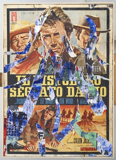 Il percorso espositivo parte dai Décollages storici e retro d’affiches, che raccontano l’atto rotelliano di strappare i manifesti dalle strade per poi elaborarli e trasporli su supporti come tele e carte e creare così opere d’arte presentate come pittoriche: il décollage, la cui parabola verrà̀ celebrata nel 1962 presso la Galleria J di Parigi in una mostra dal titolo “Cinecittà”. L’altra grande innovazione concepita durante la prima metà degli anni ’50 è rappresentata dai retro d’affiches: opere realizzate mediante i manifesti strappati dalle strade ma, in questo caso, “manipolati ed elaborati” al retro della carta, spesso caratterizzata dalla presenza di colla, ruggine ed altre imperfezioni capaci di evocare la grandezza della materia così come esaltata da Rotella.