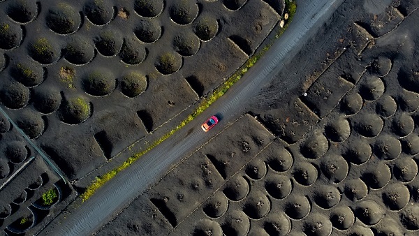 Eppure, queste condizioni consentono un’agricoltura vinicola unica al mondo, La Geria, area dove si coltiva la vite proteggendo le piantine con muretti a secco e buche scavate nella roccia. Altro paesaggio selvaggio è offerto dal Parco Nazionale del Timanfaya: 5.000 ettari lungo la costa occidentale che ospitano una vegetazione ancora incontaminata in cui i toni del rosso e dell’arancio si mescolano all’ocra, al marrone e al nero.