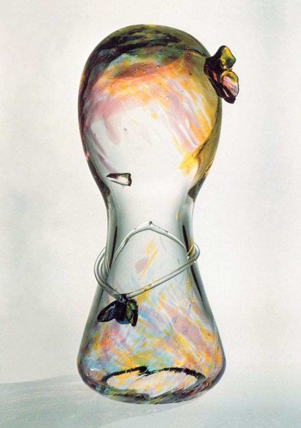 Il percorso espositivo inizierà con lavori, soffiati dai grandi maestri vetrai boemi con tecniche veneziane, di Miluše Roubíčková (Praga 1922 – 2015 KamenickýŠenov) e di René Roubíček (Praga 1922 – 2018). L’incredibile ricchezza cromatica del vetro soffiato rappresenta al meglio i lavori dei due artisti – coppia nella vita personale, ma indipendenti nella produzione artistica. Tratto narrativo peculiare della produzione di Roubíčková è una rappresentazione ante litteram dell’universo femminile nell’arte: attraverso bouquet di fiori, vassoi di pasticcini, gomitoli di lane colorate, vasetti di marmellata, tutto rigorosamente realizzato in vetro, presenta quello che, per la società dell’epoca, doveva essere il mondo femminile. I vetri informali di Roubíček sono invece espressione di vitalità e serenità, ma al contempo mettono in scena la grande forza d’animo con cui l’artista affronta un’esistenza sofferta e difficile, negli anni del regime comunista.