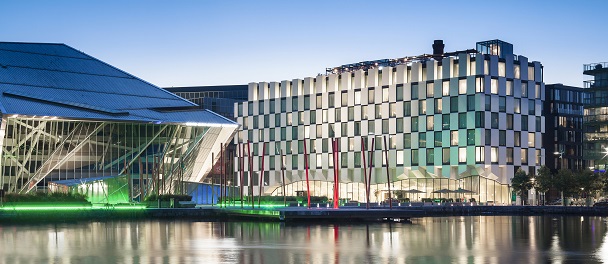 La struttura è uno degli edifici più contemporanei e architettonicamente imponenti della capitale irlandese e si trova nel cuore dei Docklands, una zona elegante e innovativa della città che ospita alcuni dei nomi più famosi del mondo della tecnologia.