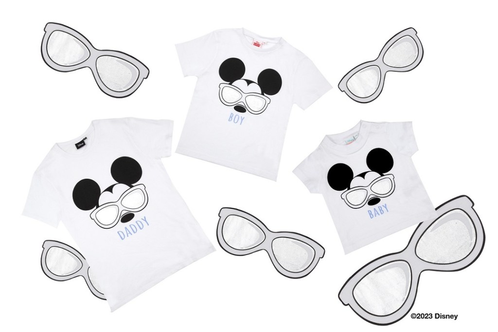 I topolini più famosi del mondo fanno capolino sulle nuove t-shirt 100% cotone per un look mini me genitori figli.