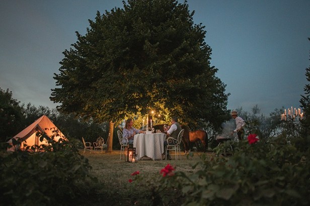 L’associazione di Giacomo e Erica Bartolucci, con sede a San Lorenzo in Campo (PU), nell’entroterra marchigiano, propone una passeggiata a cavallo dai risvolti romantici, che si conclude con una degustazione sotto le stelle e una notte speciale da trascorrere in tenda.