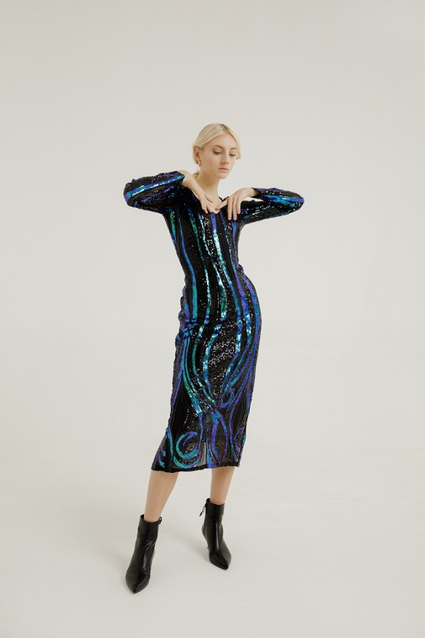 A dare unicità e dinamismo ai pezzi dalle linee definite ma sinuose, paillettes, bottoni gioiello, passamanerie, piume ed inserti di velluto.