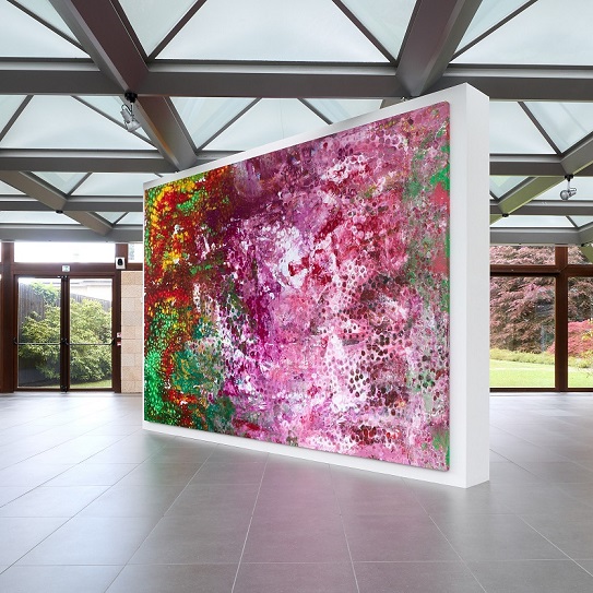 Le cromie di questi grandi quadri sembrano trarre ispirazione dalla fioritura dell’Oasi Zegna, non in maniera didascalica e formale, ma nella forza esplosiva e imprevedibile della natura.