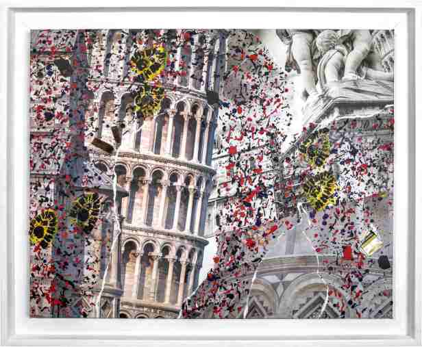 Sulla stessa tela, Milo fissa due momenti distinti della storia del soggetto: esso viene mostrato rovinato dall’azione distruttiva del tempo, dell’incuria e della storia, ma attraverso strappi e brandelli di colore che intaccano l’unità visiva (come una ‘sfogliazione’, un dècollage, sulla scia dell’eredità di Mimmo Rotella) riemerge la figura originaria con la sua estetica primigenia, affermando così la vittoria sul tempo e le sue sfide.