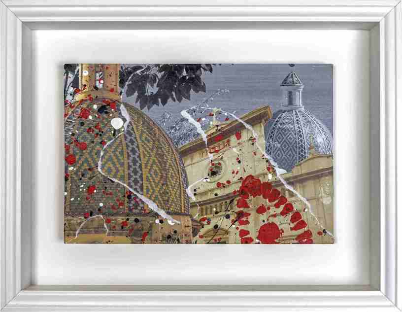Sulla stessa tela, Milo fissa due momenti distinti della storia del soggetto: esso viene mostrato rovinato dall’azione distruttiva del tempo, dell’incuria e della storia, ma attraverso strappi e brandelli di colore che intaccano l’unità visiva (come una ‘sfogliazione’, un dècollage, sulla scia dell’eredità di Mimmo Rotella) riemerge la figura originaria con la sua estetica primigenia, affermando così la vittoria sul tempo e le sue sfide.