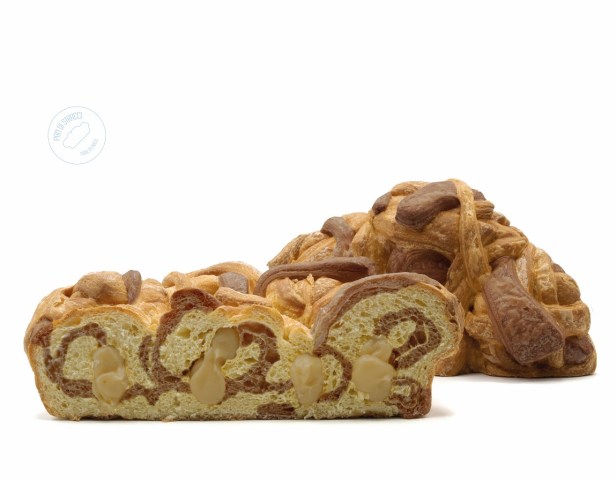 Come si ottiene l’impasto bicolore? Alla versione classica si aggiunge un ingrediente per le diverse nuance: per il Cammellitto, farcito con crema di mandorle, il colore marrone si ottiene dal cacao in polvere; per il Verzino, farcito con crema al pistacchio e cioccolato bianco, per il colore verde si usa il tè matcha in polvere; per il Mezzochiaro, farcito con crema chantilly, il colore giallo si ottiene con curcuma e pasta di cocco; per il Rossino, farcito con marmellata di fichi, il colore rosso è dato dalla pasta di fragole.