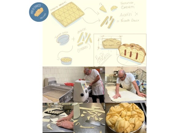 L’economia circolare entra in pasticceria con la ricetta ispirata all’arte del riuso che ha reso Prato famosa nel mondo e il più grande distretto tessile d’Europa. L’idea nasce da Leonardo Cai che ha “progettato” il dolce per la propria tesi e realizzato da Massimo Peruzzi, celebre pasticcere. Debutto a fine maggio presso la Pasticceria Peruzzi di Prato.