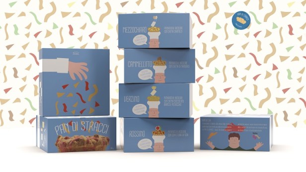 Un’ulteriore sorpresa è nella confezione, che si presenta in due varianti: in cartone (riciclabile dopo l’uso) ed in edizione speciale, in cui il Pan di Stracci è contenuto in un sacco in jeans rigenerato composto da filato 100% cotone e progettato per aprirsi completamente, diventando così una sorta di tovaglia, un supporto su cui condividere e mangiare il dolce.