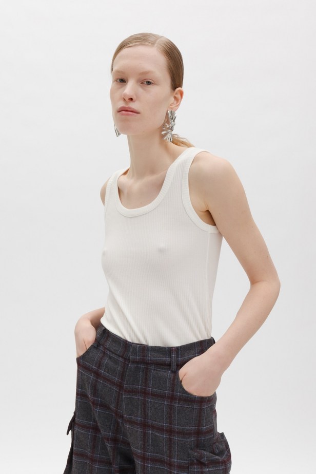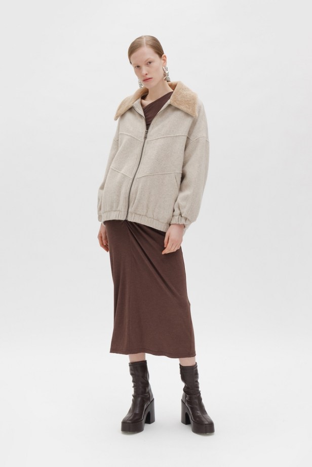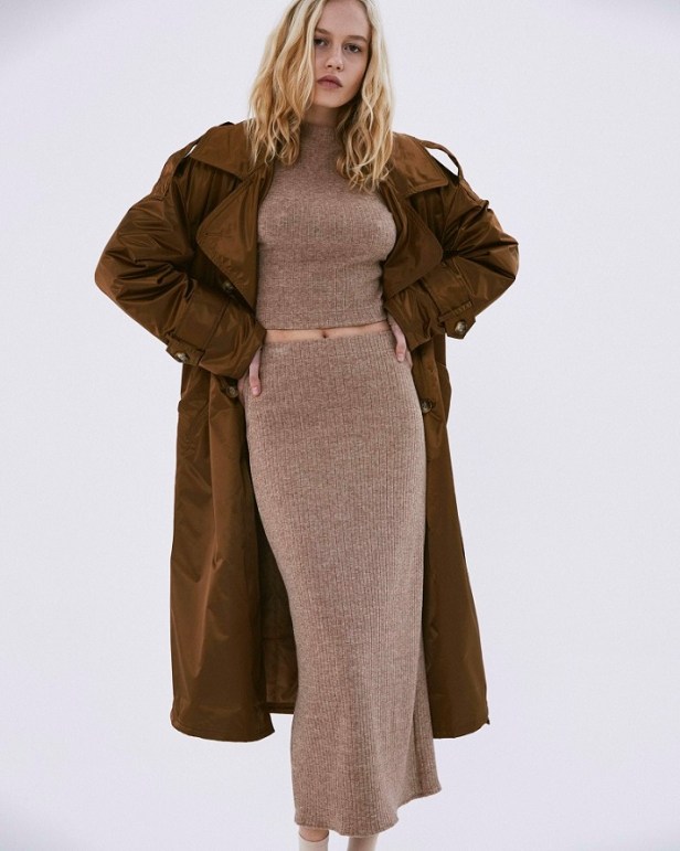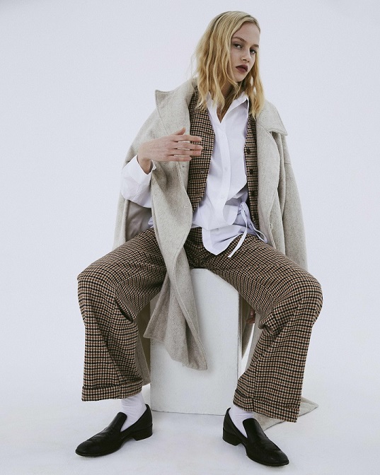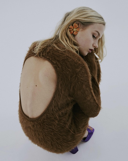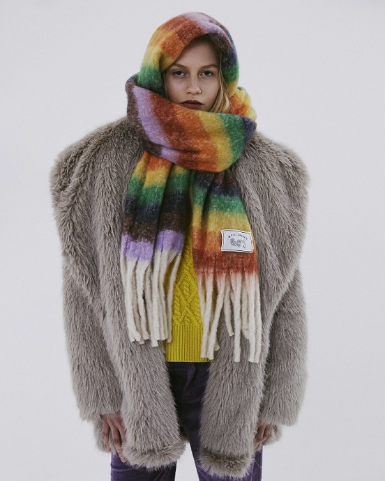 I modelli più disparati dagli stili apparentemente differenti tra loro, come la gonna longuette con spacco, il twin set in lana, la maglie cropped in pelo sintetico e i maxi pantaloni cargo, convivono armonicamente all’interno della stessa collezione ricostruendo fedelmente l’immaginario dei diversificati paesaggi nordici delle rigogliose foreste, dei laghi del sud, delle coste frastagliate e delle sinuose colline della Scania.
