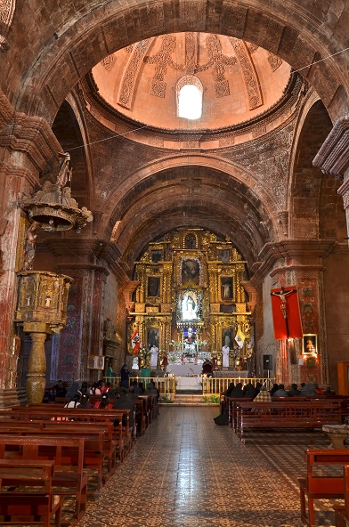 Immergersi in angoli remoti della storia locale è possibile visitando Juli, una cittadina che ospita alcune delle chiese coloniali più impressionanti del Perù. Situata a sud-est della città di Puno, Juli è soprannominata la “Piccola Roma del Sud America”. Ognuna delle quattro chiese di Juli, alcune trasformate in musei, possiede qualcosa di unico. La loro splendida architettura esterna trova ampio riscontro anche negli interni, lasciando a bocca aperta. Con l’arrivo di Domenicani e Gesuiti, diversi edifici di struttura incaica – che dividevano il territorio in quattro ayllus (clan familiari in quechua e aymara) – divennero chiese, ognuna dedicata ad un quartiere. Situata in Plaza Mayor, la Chiesa di San Pedro Martir si distingue per la sua architettura in pietra. Al suo interno, un magnifico gioco di ombre e luci illumina i suoi ricchi altari in foglia d’oro e i dipinti di alta qualità artistica. A poca distanza si trova la Chiesa di San Juan Bautista, il cui aspetto esteriore nasconde un luogo inaspettato e fantastico che ospita dipinti di grande importanza. Di notevole interesse è anche Nuestra Señora de la Asunción, situata su una collina che domina la valle. All’interno, presenta delicate pitture murali e pale d’altare dipinte dal famoso artista italiano Bernardo Bitti. Infine, la Chiesa di Santa Cruz de Jerusalén fu costruita tra il 1581 e il 1582, ricostruita nel 1741, ancora rinnovata nel XVIII secolo e quasi distrutta da un fulmine nel 1914. Ciò che si vede oggi testimonia la sua grandiosa architettura del passato. Superata Juli, in direzione sud est, si giunge a Pomata, un villaggio in cui sorge una gloriosa chiesa in arenaria rossa costruita dai domenicani nel XVII secolo: si tratta del Templo de Pomata Santiago Apóstolo, risalente al 1700. In posizione spettacolare in cima a una collinetta, la struttura è un’intrigante mescolanza di austerità e splendore. La chiesa è famosa per le vetrate in alabastro traslucido e per la facciata barocca in arenaria riccamente scolpita. L’interno, poi, si rivela spettacolare, con intricati intagli barocchi ovunque.