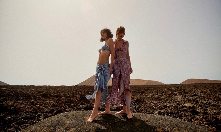 Nelle stampe, sofisticate e glamour, i tocchi gipsy rimangono appena accennati e i tagli evolvono verso forme fluide e ampie che coprono e danno struttura alla figura femminile, a contrasto con i cut ridotti dei bikini, audaci e civettuoli sempre.