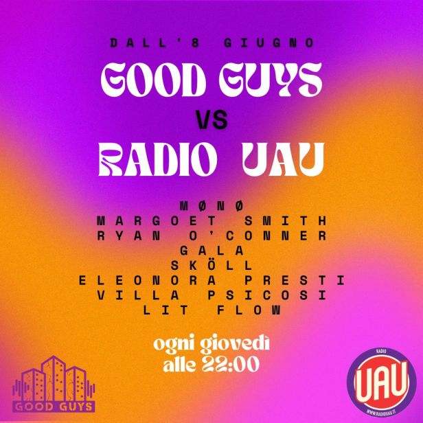 GOOD GUYS vs RADIO UAU è il nuovo format radiofonico di Radio UAU, che vedrà protagonisti gli artisti gestiti e promossi dall’agenzia Good Guys, intervistati dallo staff dell’agenzia stessa, per otto puntate, con un appuntamento a settimana in onda ogni giovedì dall’8 giugno, dalle 22:00 alle 23:00, su Radio UAU, “La Radio che urla al Mondo”.