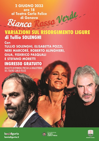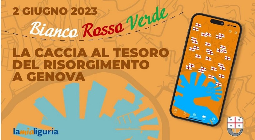 Dalle 14 alle 17 del 2 Giugno si svolgerà la caccia al tesoro “Bianco Rosso Verde, il gioco degli anni che fecero l’Italia”, un’attività dedicata ai liguri e ai turisti che consentirà di riscoprire le tappe storiche ed i luoghi nascosti del Risorgimento a Genova. Il gioco, così come lo spettacolo di Tullio Solenghi che andrà in scena al Carlo Felice alle ore 18, viene anche promosso sulla facciata del palazzo della Regione Liguria in piazza De Ferrari.