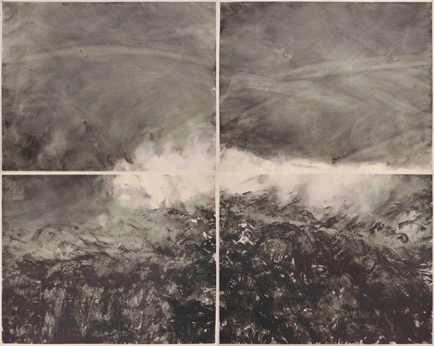 Un evento che ha messo sotto la lente di ingrandimento la potenza e fragilità delle montagne, in contrasto solo apparente con la loro maestosità. Il mondo minerale a cui esse appartengono è definito inanimato, ma solo se lo si guarda in superficie, perché nelle viscere della terra gli elementi minerali vivono un dinamismo potente e imprevedibile. La natura idilliaca non è il centro di interesse di queste opere, cheanzi diventano l’occasione per una riflessione di politica ambientale e ricerca sociale e culturale, riflesso delle storie e dei traumi personali o collettivi. I suoi paesaggi maestosi sono anche il riflesso del bisogno vitale dell’uomo contemporaneo di pace e profonda meditazione. In questa serie monumentale Katarina sperimenta per la prima volta la spiccata materialità e il potenziale tattile della pittura, avvicinando la superficie del dipinto alla struttura dei massicci di pietra.