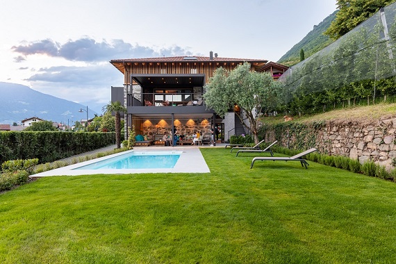 L’Innerbachlerhof, un maso di design di Gallo Rosso a Postal, vicino a Merano, per gli ospiti dei suoi bellissimi appartamenti ha creato una piscina di acqua salata con intorno una moderna lounge area, ideale per i momenti di relax. Dopo una giornata dedicata alle escursioni, è un’idea eccellente tuffarsi nella piscina e sorseggiare in seguito un aperitivo in attesa del tramonto.